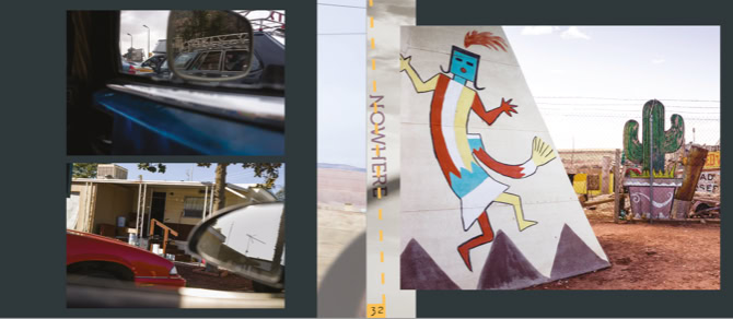 However, Theo Derksen chooses to show his photographs purely as a result of the route he has traveled. No more and no less. He brings the images together in a leporello. Originally a zigzag folded book, for the exhibition elaborated into an impressive installation. The photographs shown on it refer to stories. Stories that the viewer can come up with. For example, we are invited to embrace story telling using the photos shown as a dynamic way of being on the go. Let us be surprised by what we encounter without being immediately on the road. Under the motto Approaching Nowhere we capture images and tell stories