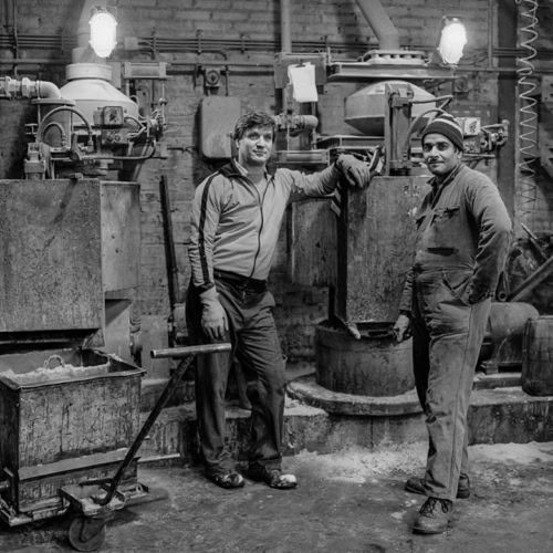 Workers at the Steelmill Globe Weert, 1983.
