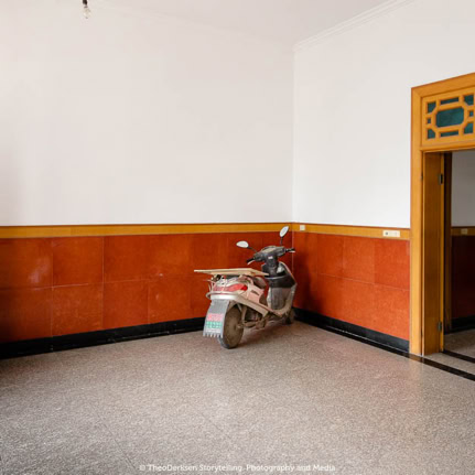 The photographs by Theo Derksen, however, fascinate me. Even though they were made during distant journeys, and they originated in places with exotic sounding names, travel photographs, understood in the sense described above, I can not and will not mention them. Whoever wishes to consider them as such, in my opinion, passes on their most essential qualities. To demonstrate this, I propose a small exercise. We undertake an effort to view these photos by ignoring their descriptive, documentary content. We forget names and places, date and time of the depicted. Let us focus on photographic images, on what happens in these abstract spaces. After all, photographs create their own worlds. They are frameworks in which forms and objects are arranged, inter-related and placed in a new, suggestive context.