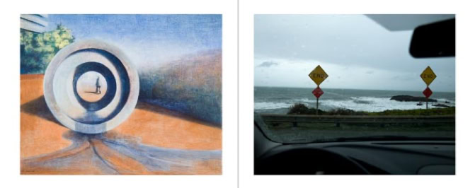 The procedure they have followed is special. Each started at the same time with a work. The one with a photo, the other with a painting. Then they gave this work to each other with a request for a response. And they have exchanged this reaction again and they have asked for a reaction, and so on. They have taken three months for that. This resulted in two series of 16 works consisting of 8 photos and 8 paintings in four years.