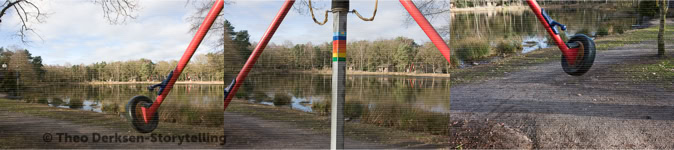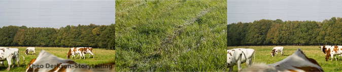 Theo Derksen uses a number of image strategies in a subtle but efficient manner that regularly recur in his work. He uses formal structures that build a relational field of tension between iconographic elements that initially seem to coincidentally coincide. Usually these structures can be understood as a form of juxtaposition. What almost inevitably suggests equality and simultaneity. And consequently also: reversibility. Mutual involvement, without hierarchical coercion or order. The photographs by Theo Derksen seldom have a single, centrally placed motif. On the contrary, the attention is drawn between front and back, characters and decor, left and right, top and bottom, light and dark, open and closed spaces.