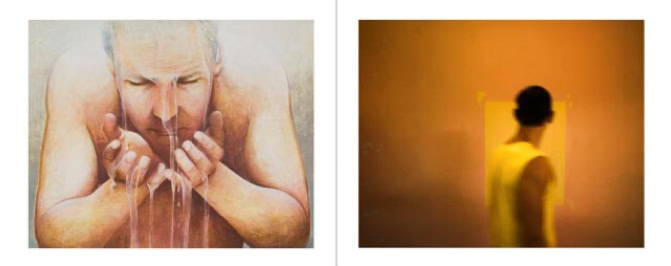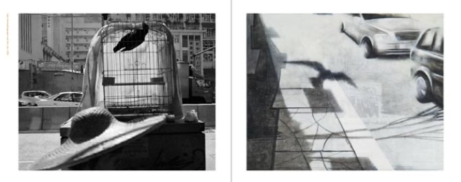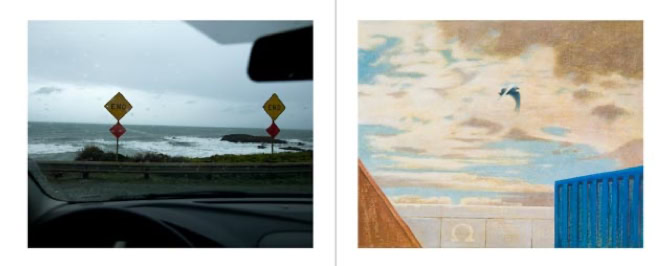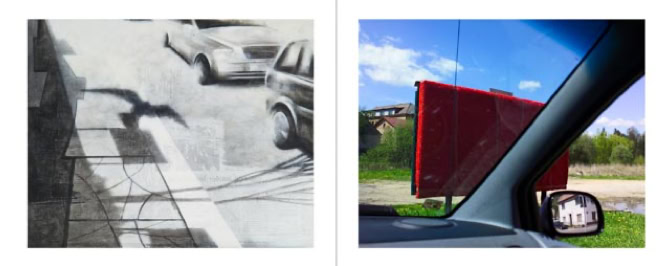 The procedure they have followed is special. Each started at the same time with a work. The one with a photo, the other with a painting. Then they gave this work to each other with a request for a response. And they have exchanged this reaction again and they have asked for a reaction, and so on. They have taken three months for that. This resulted in two series of 16 works consisting of 8 photos and 8 paintings in four years.