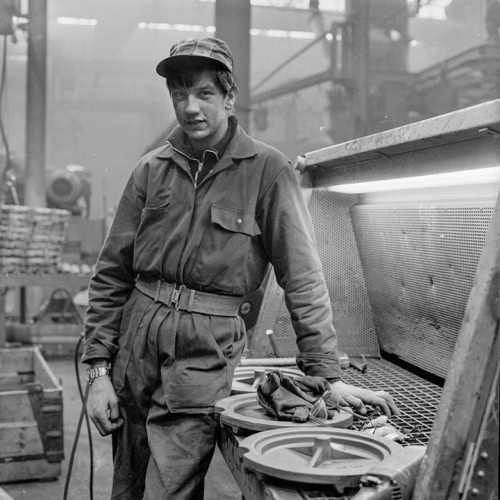Workers at the Steelmill Globe Weert, 1983.