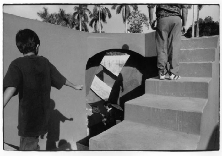 The photographs by Theo Derksen, however, fascinate me. Even though they were made during distant journeys, and they originated in places with exotic sounding names, travel photographs, understood in the sense described above, I can not and will not mention them. Whoever wishes to consider them as such, in my opinion, passes on their most essential qualities. To demonstrate this, I propose a small exercise. We undertake an effort to view these photos by ignoring their descriptive, documentary content. We forget names and places, date and time of the depicted. Let us focus on photographic images, on what happens in these abstract spaces. After all, photographs create their own worlds. They are frameworks in which forms and objects are arranged, inter-related and placed in a new, suggestive context.